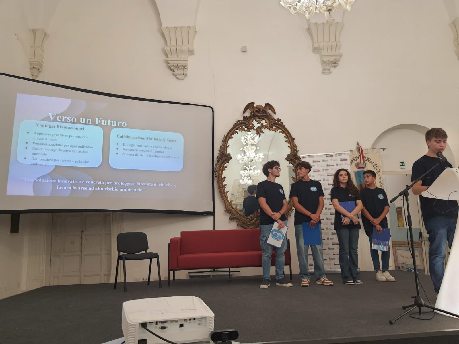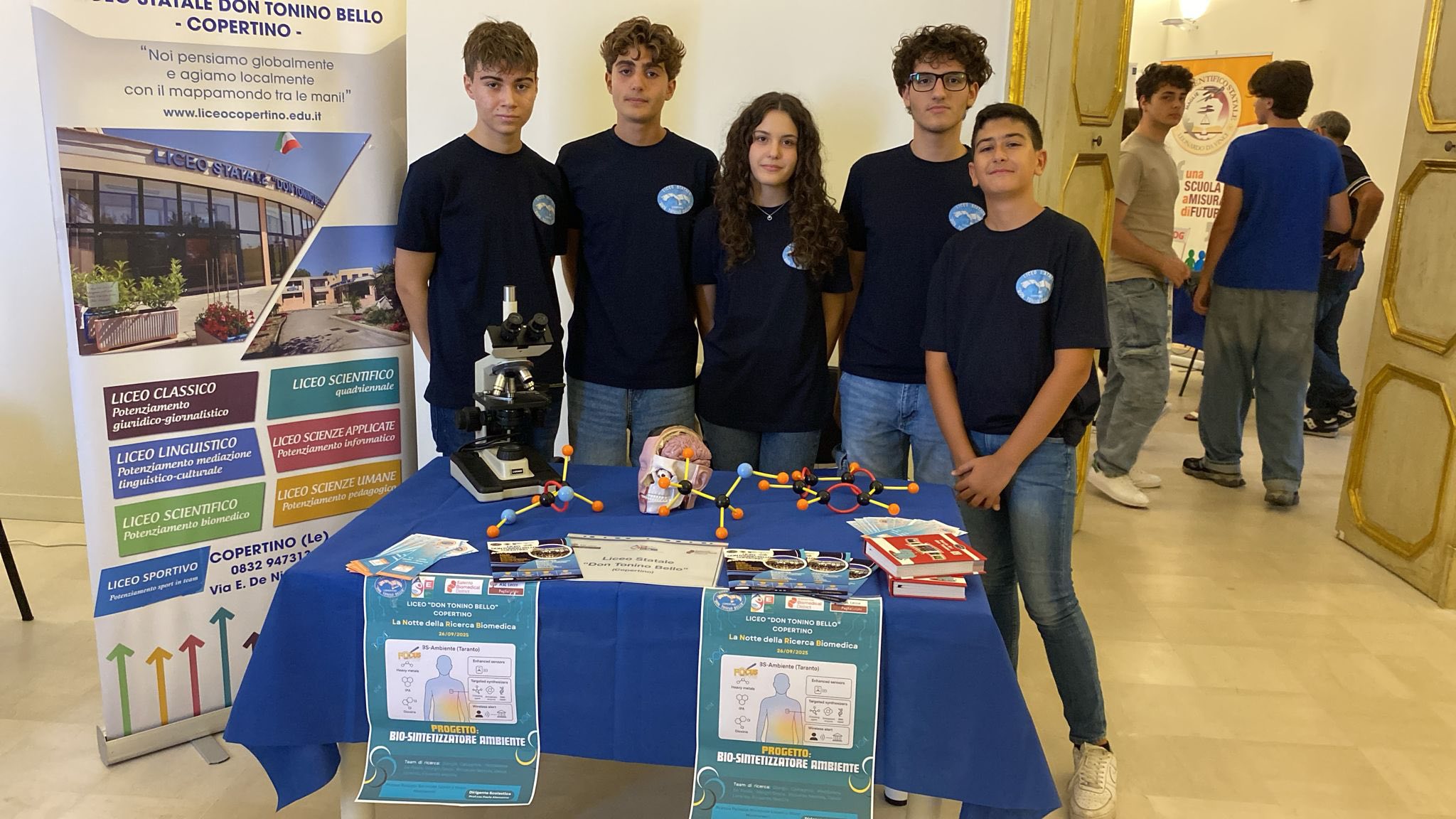 I nostri studenti hanno partecipato, presso il Palazzo Baronale Lopez y Royo di Monteroni di Lecce, all’edizione 2025 de “La Notte della Ricerca Biomedica”, organizzata da ASL Lecce, Istituto Italiano di Tecnologia e Università del Salento, in collaborazione con Salento Biomedical District e Città di Monteroni di Lecce, con il progetto “Bio-Sintetizzatore Ambiente”, con lo scopo di realizzare uno strumento importante per la prevenzione e la cura tempestiva dei tumori causati dalle sostanze nocive rilasciate nell’ambiente dall’acciaieria di Taranto. Il progetto BS- Ambiente è in grado infatti di riconoscere le sostanze nocive nell’organismo, di bloccarne gli effetti grazie alla produzione di molecole attive e di inviare dati di allerta e monitoraggio agli enti predisposti alla salute umana e alla tutela ambientale.