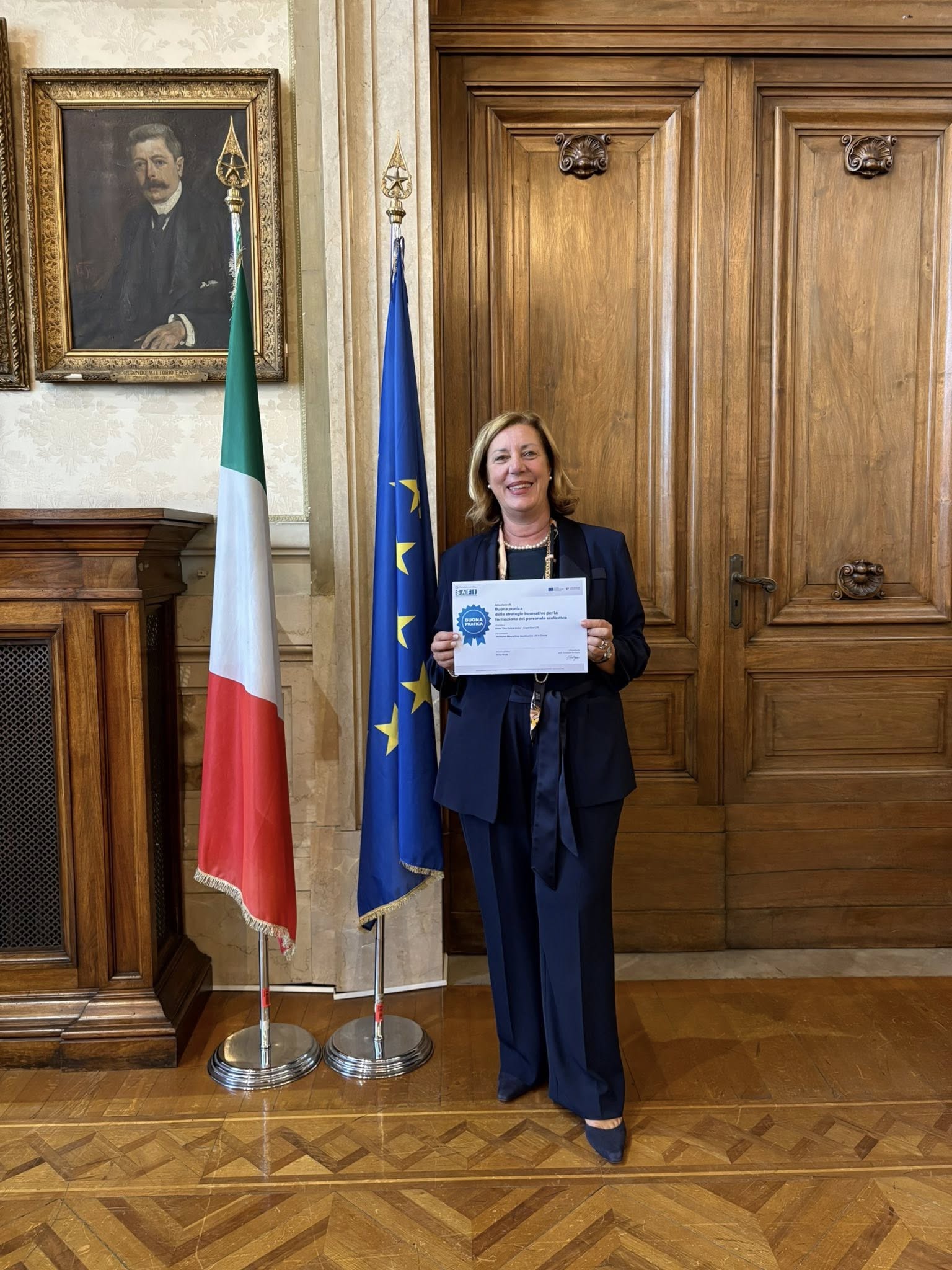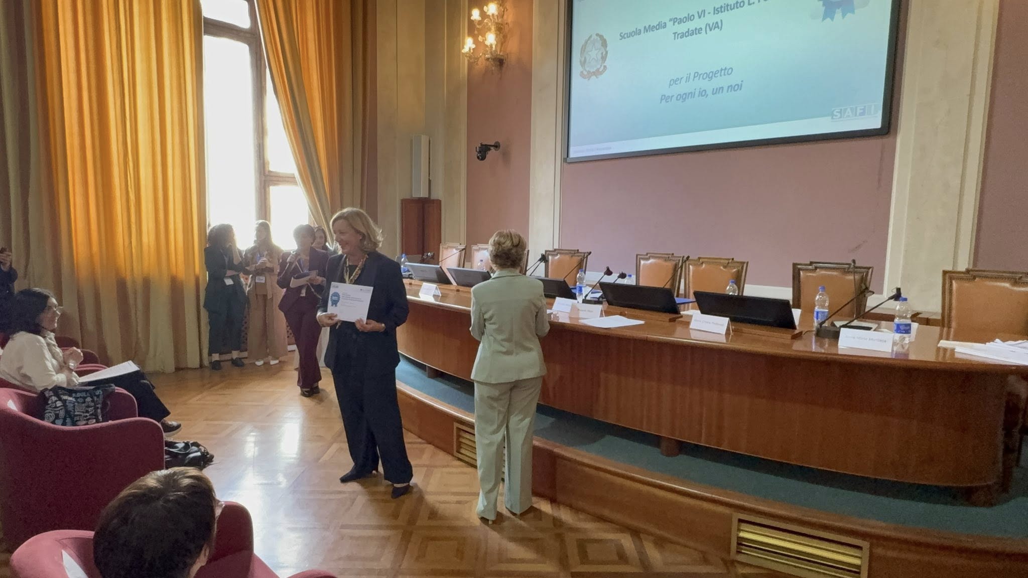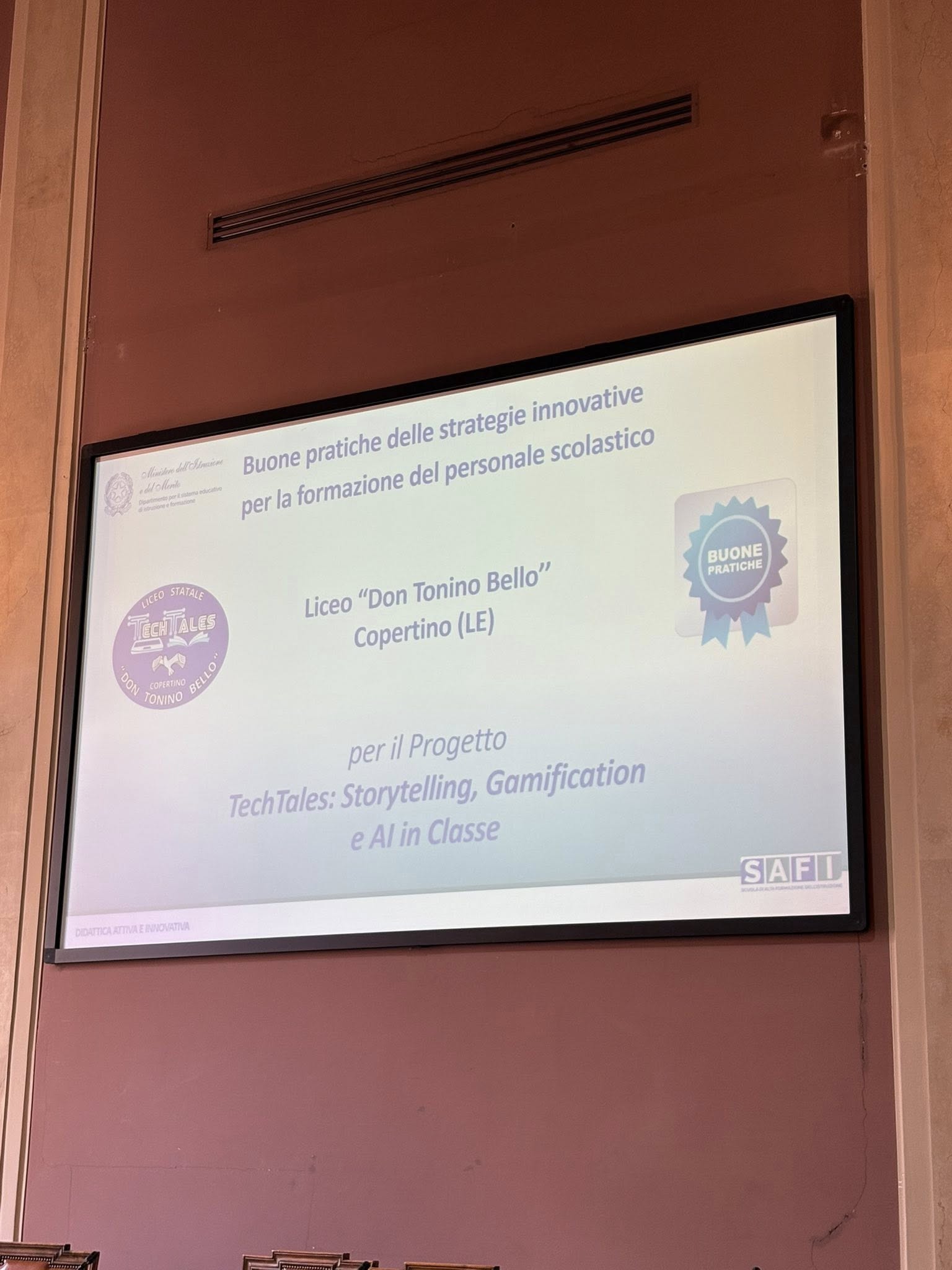 Ricevere presso la sede del MIM il riconoscimento di Buona pratica per il nostro progetto “Tech Tales: Storytelling, Gamification e AI in Classe”, che ha coinvolto sul piano della formazione i nostri docenti e per la sua realizzazione i nostri alunni, è un grande onore, che dedico a tutti coloro che ogni giorno vi lavorano e che contribuiscono al suo successo: alunni, docenti, ATA e genitori. Si tratta di un grande impegno che ci assumiamo e che intendiamo portare avanti con la nostra solita determinazione e con la straordinaria passione di sempre, coinvolgendo anche tutta la rete S.M.I.L.E., di cui siamo scuola capofila, con attività di gamification e di digital storytelling (con creazione di fumetti e cortometraggi) per gli studenti delle scuole aderenti e confermando la mission della rete che si amplia nella direzione del sociale con la lotta al cyberbullismo e dell’internazionalizzazione.